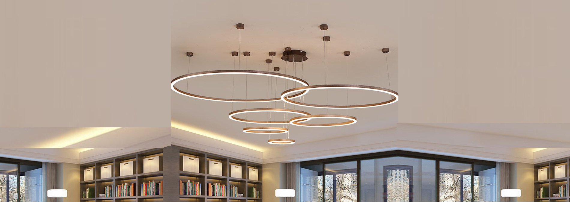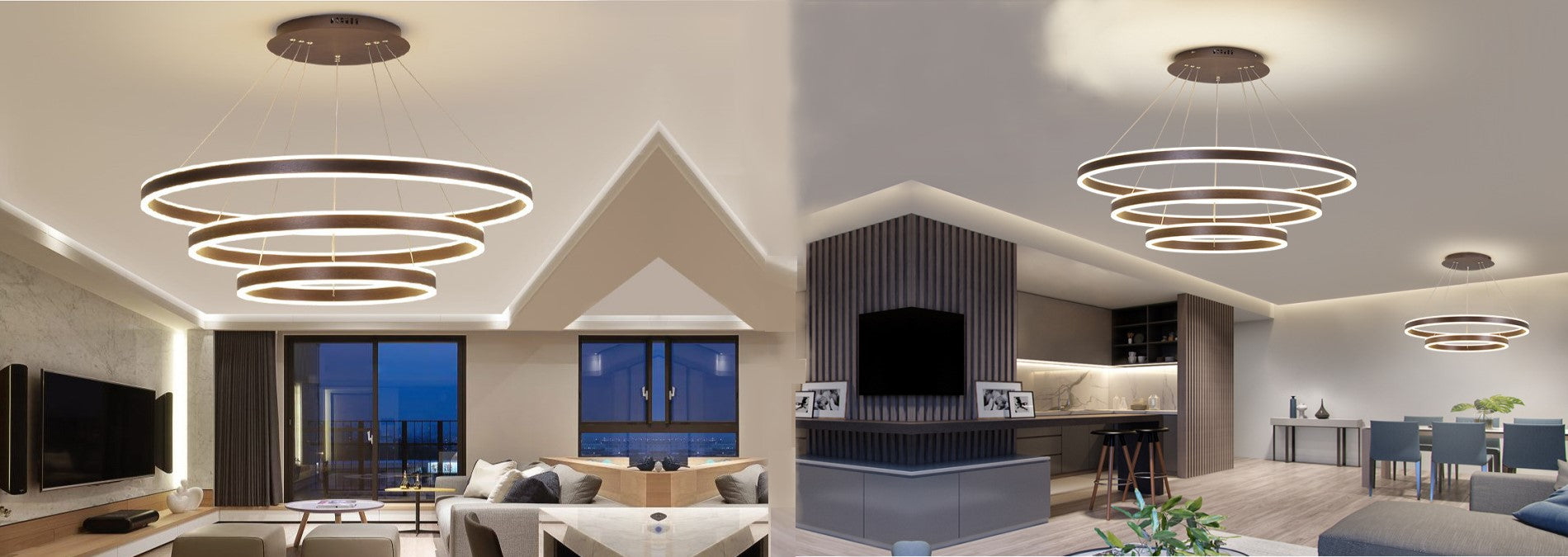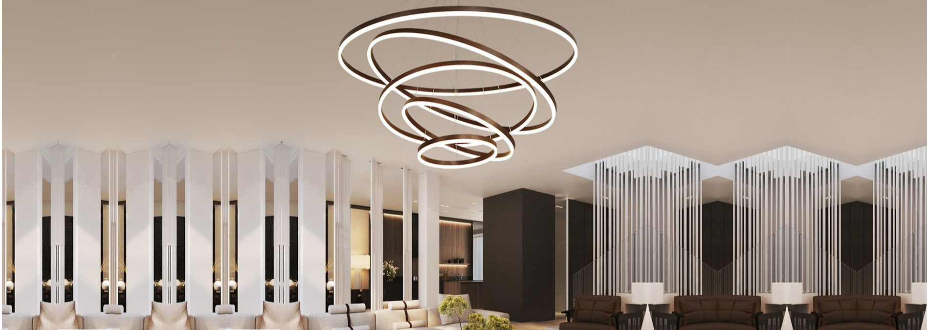 Agora Titan LED fixture explores light and ephemeral beauty: like Snowflake. Made in USA with diameter of 25.43”, extruded aluminum frame with glare-free up and aircraft cable suspension.